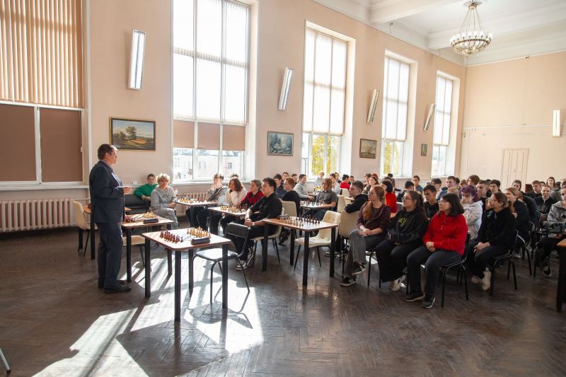 В этот же день директор краевого шахматного клуба Дмитрий Косачев провел в новом шахматном учебно-тренировочном классе первое занятие для студентов. Ребята познакомились с историей возникновения и правилами шахмат.