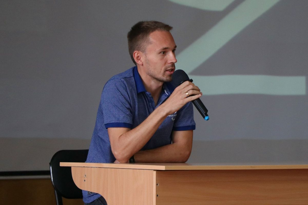 Спортсмен поделился с ребятами своей историей о том, как он начинал заниматься лёгкой атлетикой и как шёл к своим целям, несмотря на недуг.