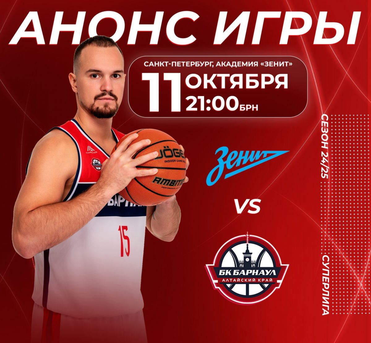 В прошлом сезоне «Зенит-2» изрядно пошумел и занял 4-е место в Суперлиге. В этом году команда также амбициозная, усилившаяся чемпионом и одним из лучших игроков Суперлиги - Даниилом Аксеновым, и уже ударно начала сезон, в первом туре уверенно обыграв БК «Новосибирск» (85:69) на своей площадке.