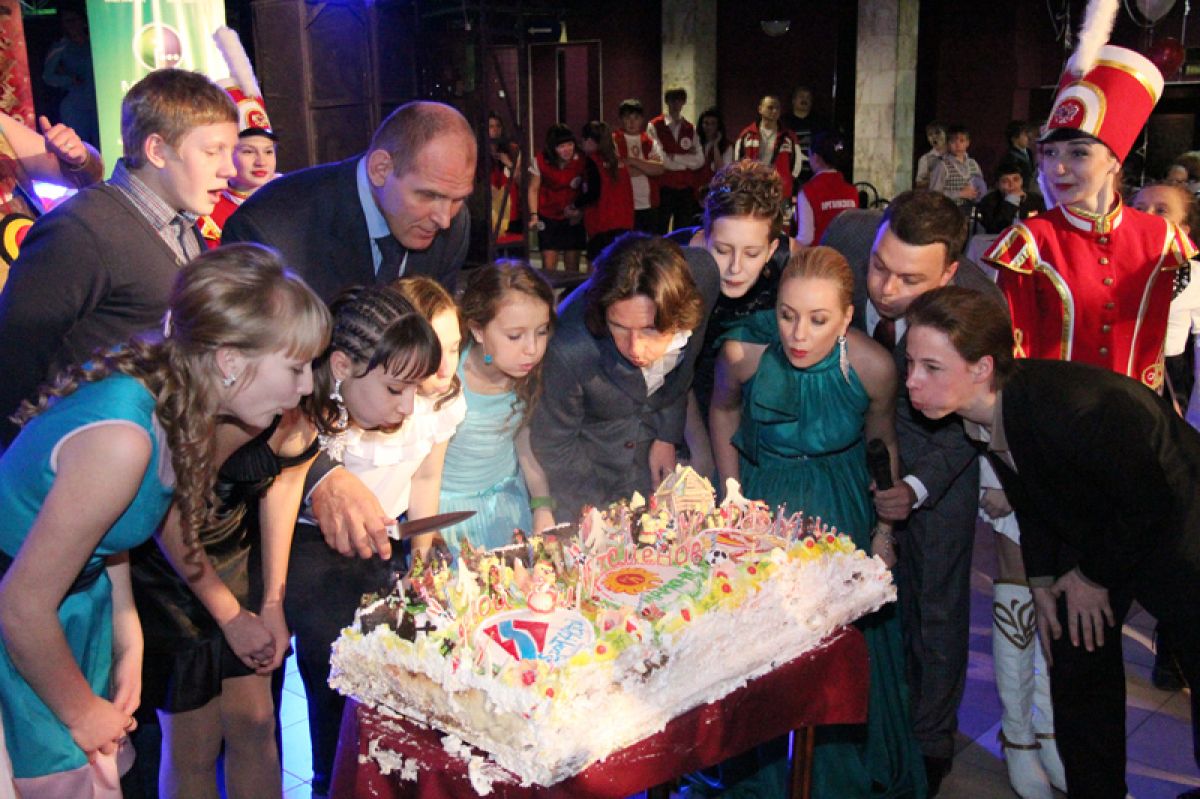 Завершился бал вкусным сюрпризом. В центр зала внесли огромный 35-килограммовый торт, которым смогли угоститься все присутствующие.