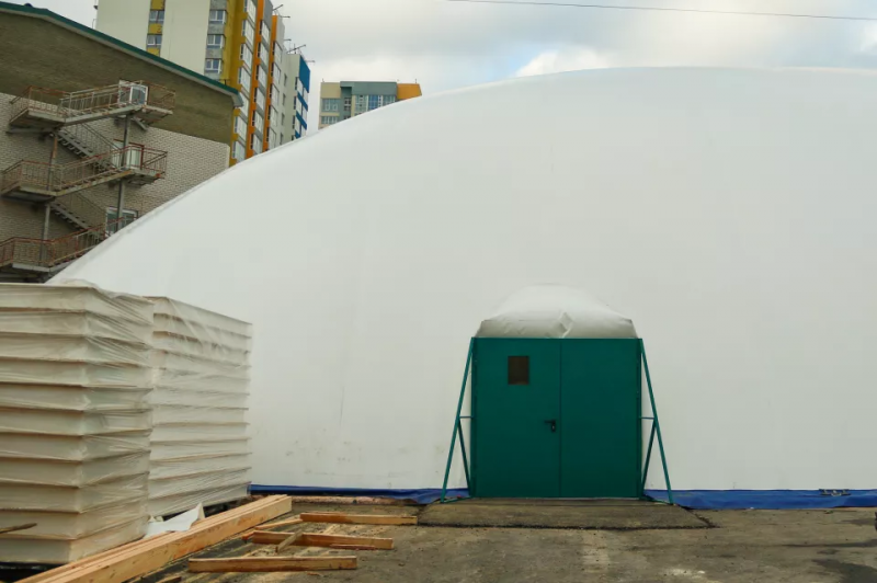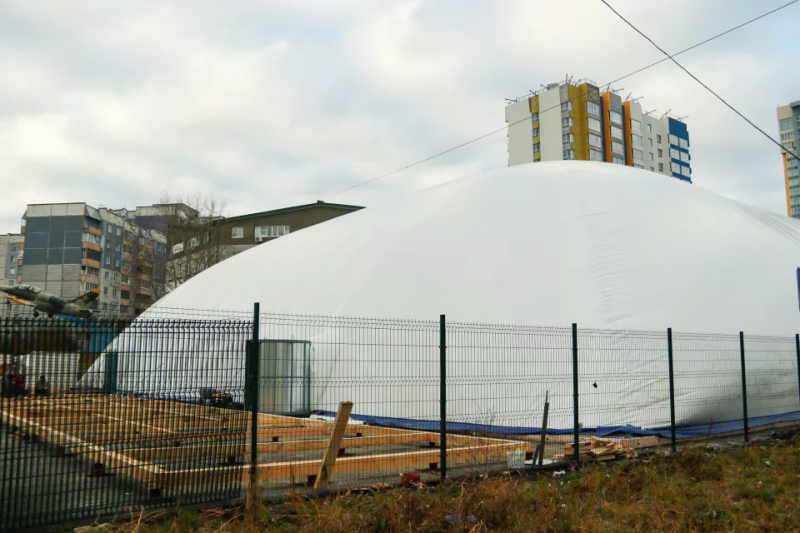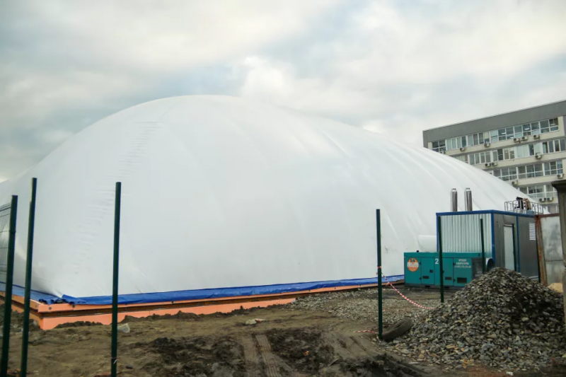 Оставалось лишь установить воздухоопорную конструкцию. Несмотря на аномальную погоду в виде дождя со снегом и резкого похолодания, купол манежа все же установили, рассказал гендиректор компании-застройщика и один из инвесторов проекта Дмитрий Черкашин.