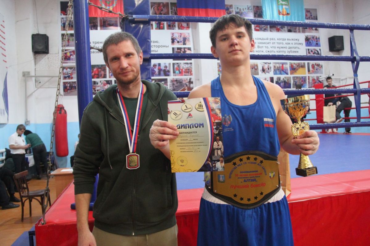 Среди них Арсений Павленко - мастер спорта, ученик Валерия Владимировича. В зал «Алтай» Арсений пришёл вместе со своим наставником в 2004 году - в 11 лет. До этого парень из посёлка Южный занимался у Коломотова в помещении спортклуба «Звенящие клинки» в центре города. Говорит, даже не задумывался о том, что ездить ему придётся в два раза дальше: любовь к боксу и доверие к тренеру были определяющими. В «Алтае» Арсений добился впечатляющих результатов: стал победителем первенства России среди боксёров 17−18 лет, трехкратным призером первенств страны среди спортсменов 19−22 лет, в 2018 году выиграл титул чемпиона Сибири и был признан лучшим боксёром соревнований. Со сборной страны выезжал для участия в международном турнире на Кубу. В спортклубе «Алтай» Арсений трудится тренером уже год: работает в паре с Валерием Коломотовым. На прошедших соревнованиях портрет Арсения Павленко украшал чемпионские пояса, которыми награждались лучшие боксёры турнира.