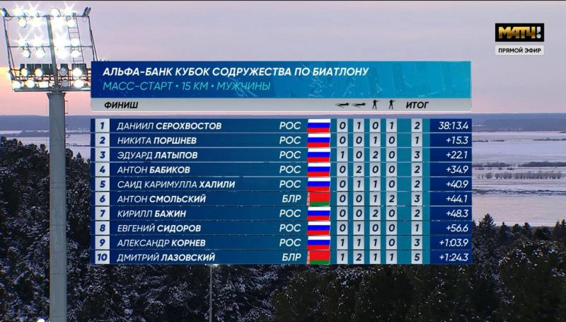 Моментом потери интриги в гонке стала третья стрельба. Серохвостов отработал точно, а все главные соперники допустили осечки: Смольский — одну, Латыпов — две, Никита Поршнев — одну, Бажин — две. И Даниил убежал от всех почти на полминуты. Даже один промах на второй стойке не помешал Серохвостову финишировать в гордом одиночестве. Остальные медали разыграли Никита Поршнев и Эдуард Латыпов.