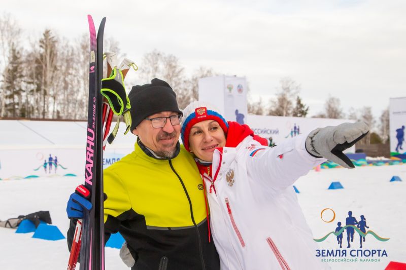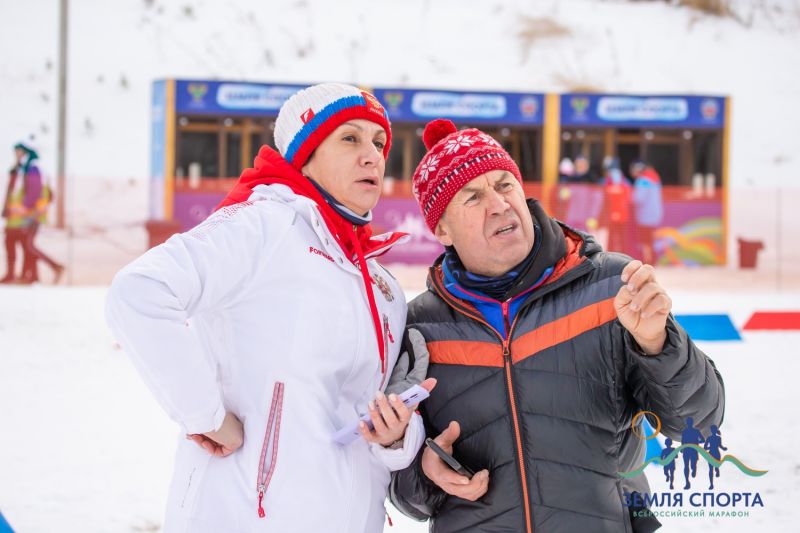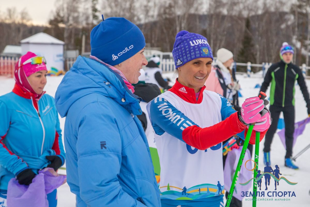Специальным гостем Всероссийского марафона «Земля спорта» стала легендарная лыжница Елена Вяльбе, ныне возглавляющая национальную федерацию лыжных гонок.