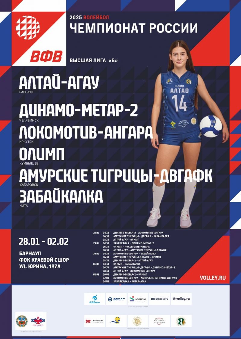 Во вторник, 28 января, в Барнауле стартуют игры 4-го общего тура чемпионата России по волейболу среди женских команд Высшей лиги «Б» в группе «Сибирь».