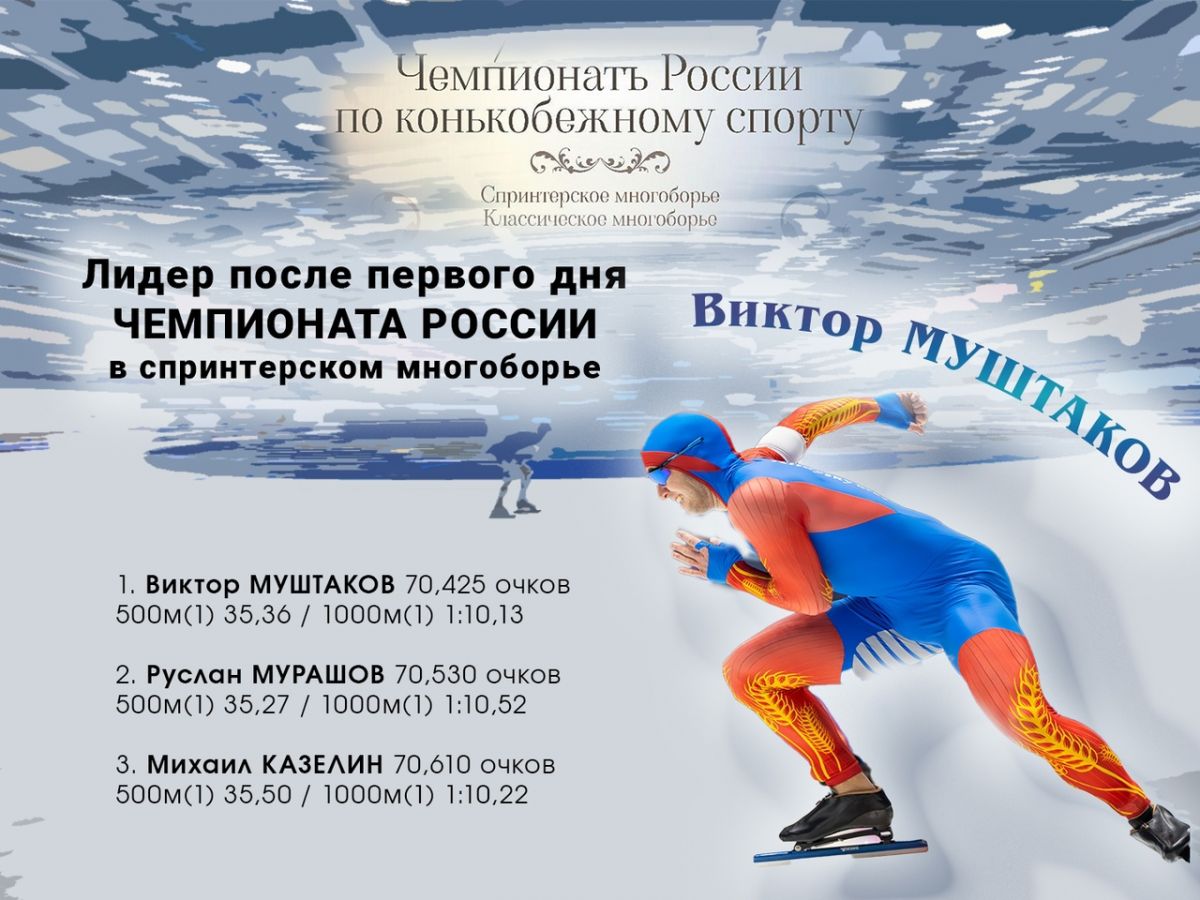 Впереди Муштаков. Алтайский конькобежец лидирует в спринтерском многоборье после первого дня чемпионата России