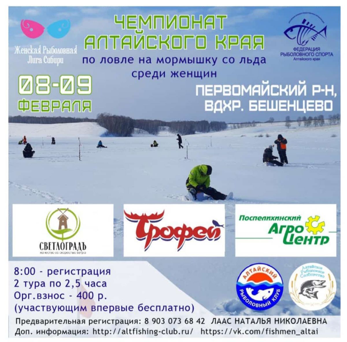 9 февраля. Первомайский район. Водохранилище Бешенцево. Чемпионат Алтайского края по ловле со льда среди женщин