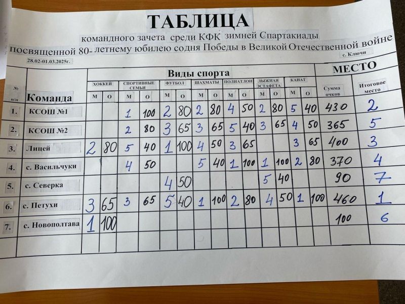 С 28 февраля по 1 марта в райцентре Ключёвского района прошла муниципальная зимняя спартакиада, приуроченная к 80-летию Победы в Великой Отечественной войне.