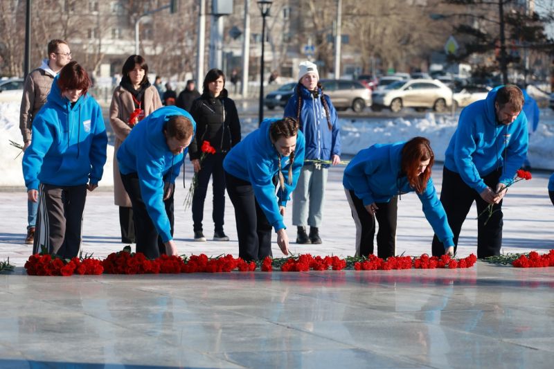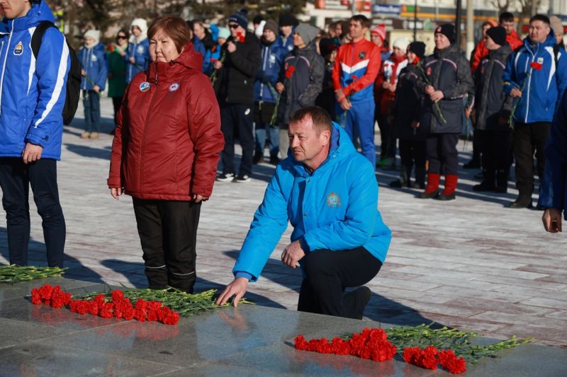 Участники XII Всероссийских зимних сельских спортивных игр возложили цветы на Мемориале Славы в Барнауле (фото)