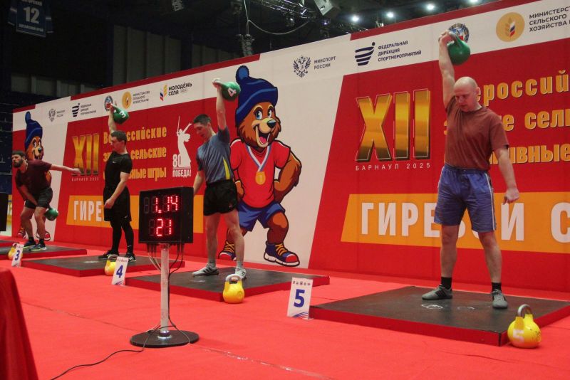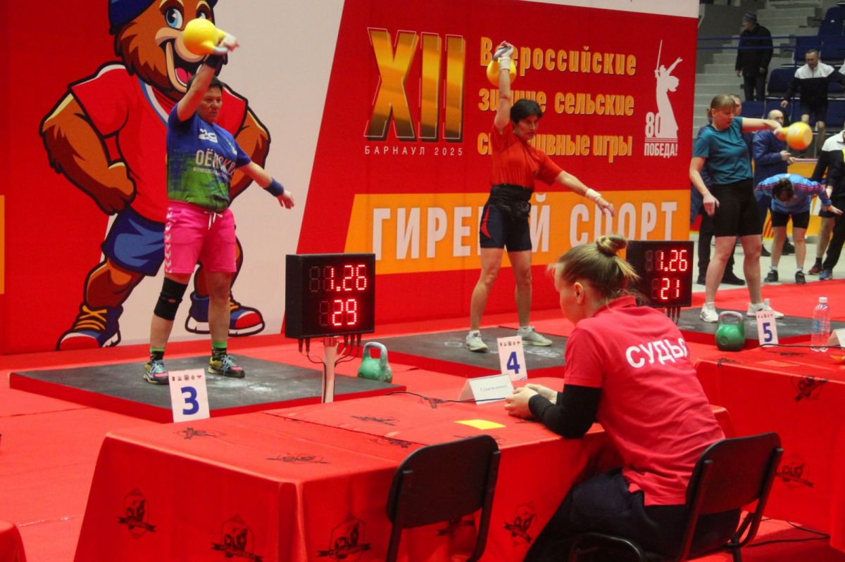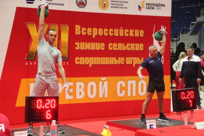 В «Титов Арене» 16 марта на XII Всероссийских зимних сельских спортивных игр прошли соревнования из программы троеборья механизаторов и троеборья дояров по гиревому спорту.