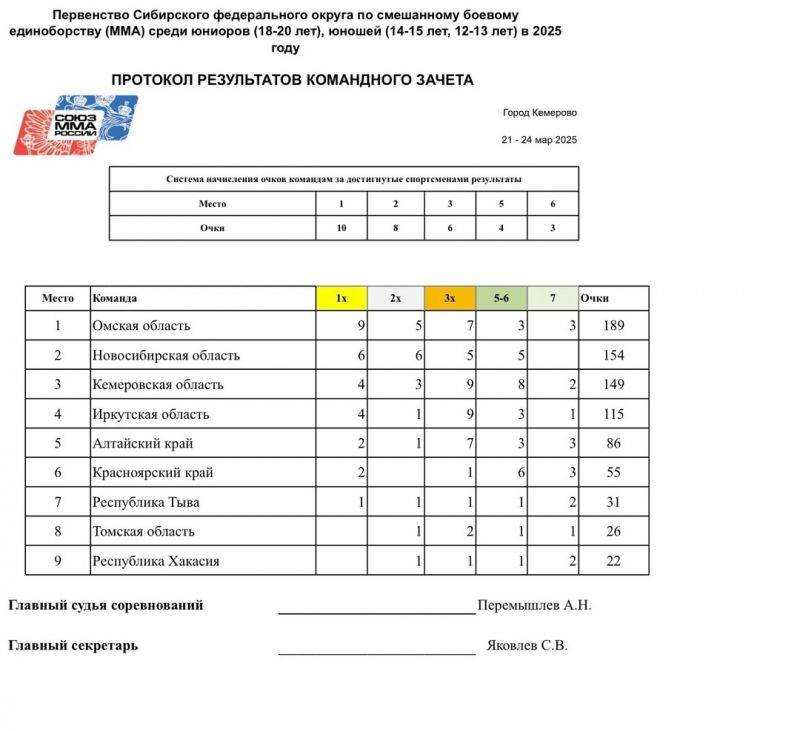 22−23 марта в Кемерово в многофункциональном спортивном комплексе «Кузбасс-Арена» состоялось первенство Сибирского федерального округа по смешанному боевому единоборству (ММА) среди юниоров 18−20 лет, юношей 14−15, 12−13 лет.