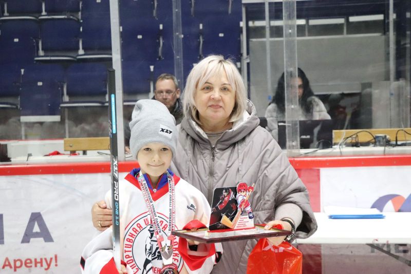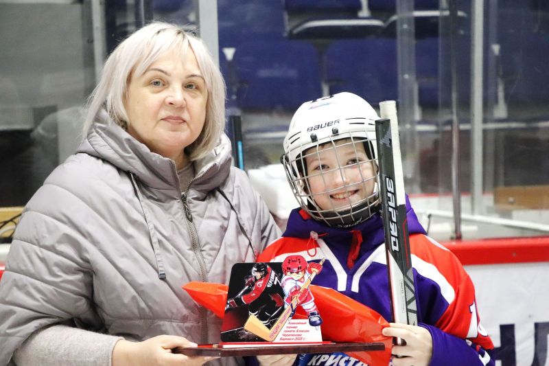 Призы и награды командам и хоккеистам на церемонии закрытия вручила мама Алексея Черепанова - Рита Александровна.