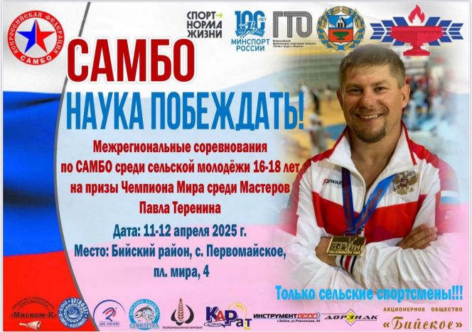 12 апреля в селе Первомайское Бийского района пройдёт межрегиональный турнир по самбо среди юношей и девушек 16−18 лет (2007−2009 годов рождения).