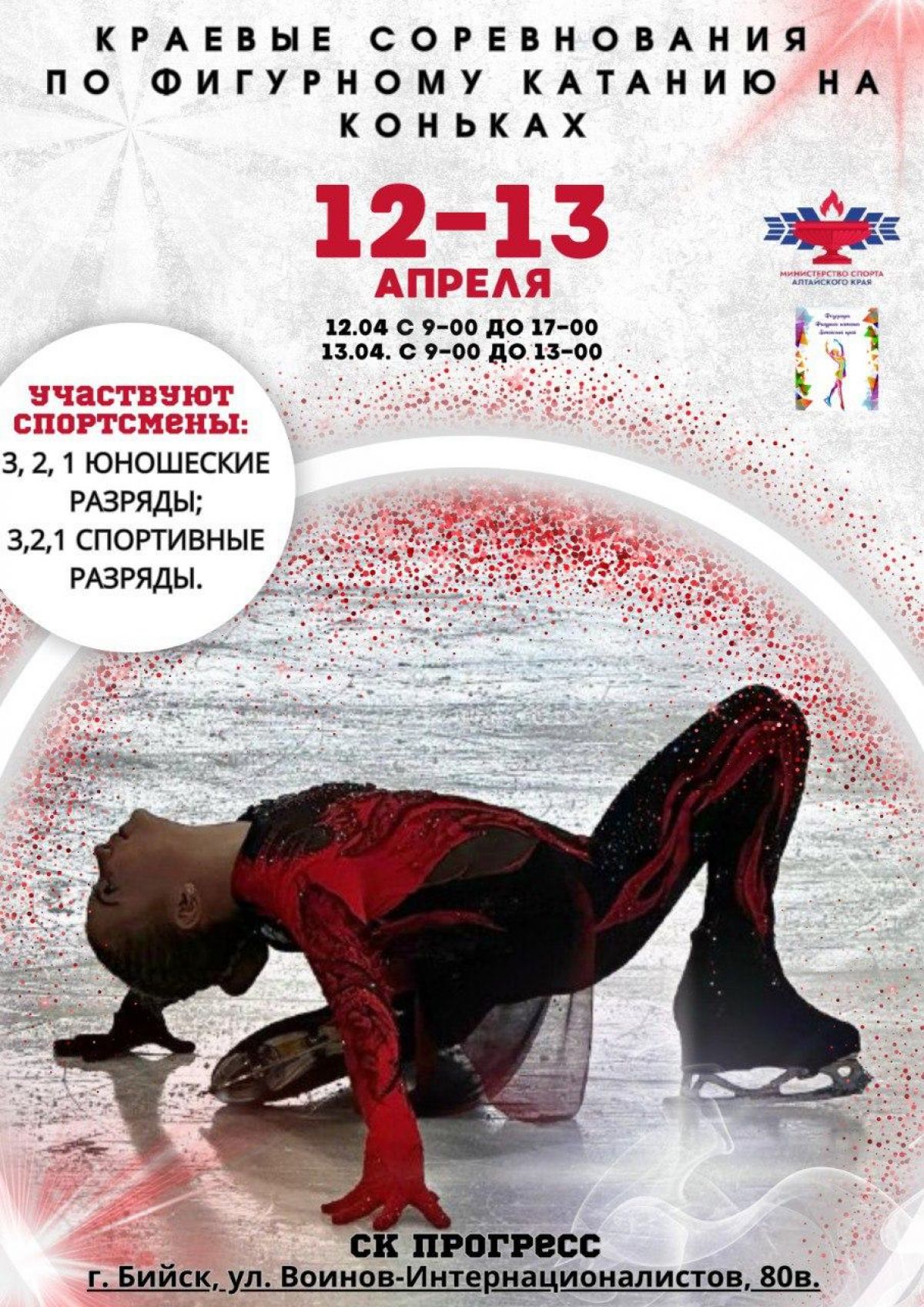 12−13 апреля. Бийск. Ледовая арена «Прогресс». Краевые соревнования по фигурному катанию