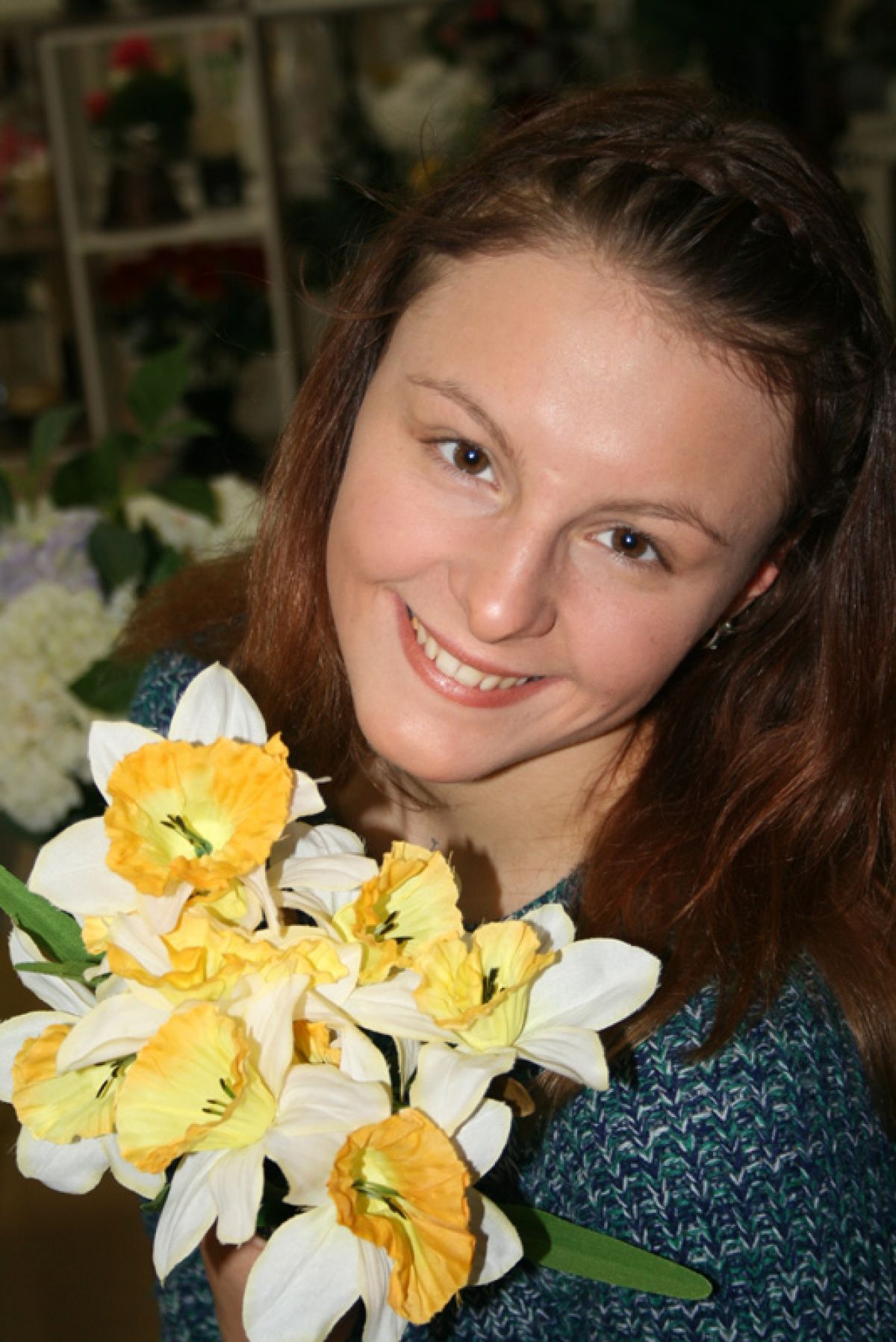 - А мне все нравятся! Мы, Цветковы, любым цветам рады. Наверное, фамилия сказывается. Хотя была однажды история: увидела я в киоске чёрную розу, не просто тёмно-бордовую, а с каким-то даже угольным отливом, и так она мне понравилась, буквально заворожила меня. Увы, больше таких роз я никогда не встречала. А сегодня я выбираю букет нарциссов - это же весенние цветы. Ой, скорей бы наступило лето!