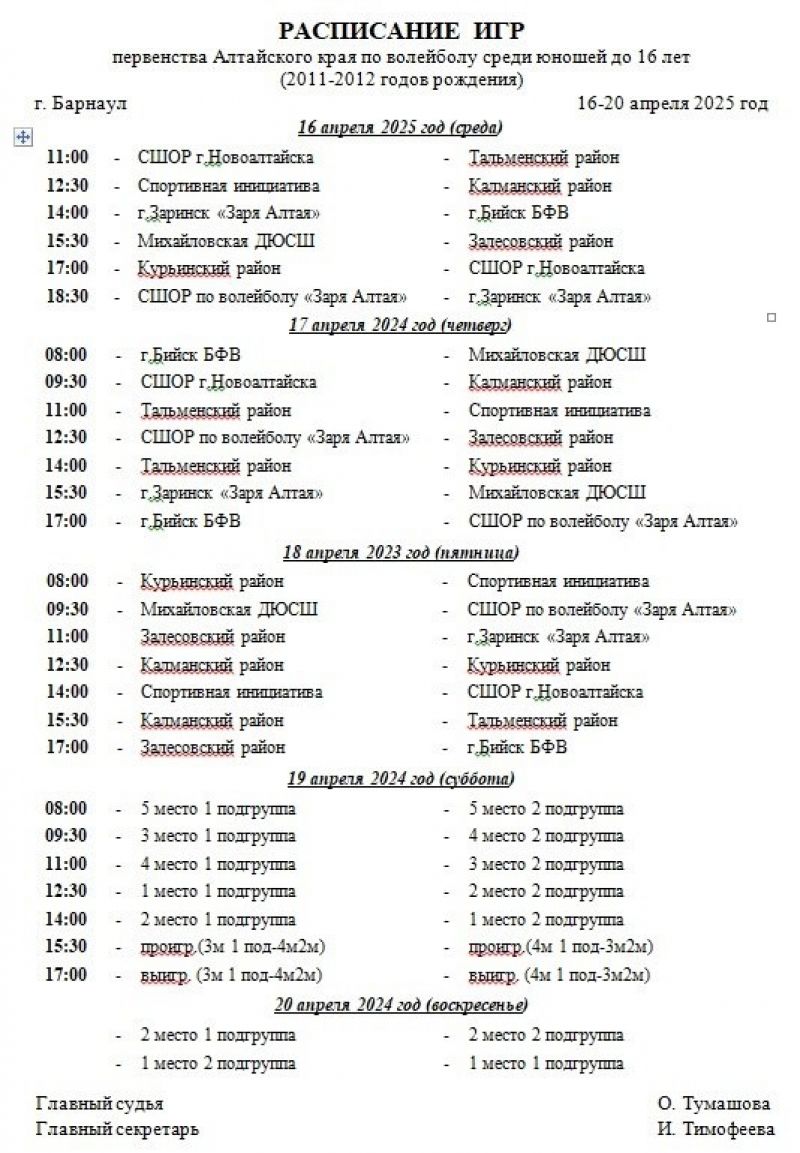 16−20 апреля. Барнаул. ФОК Краевой СШОР. Первенство Алтайского края среди юношей до 16 лет