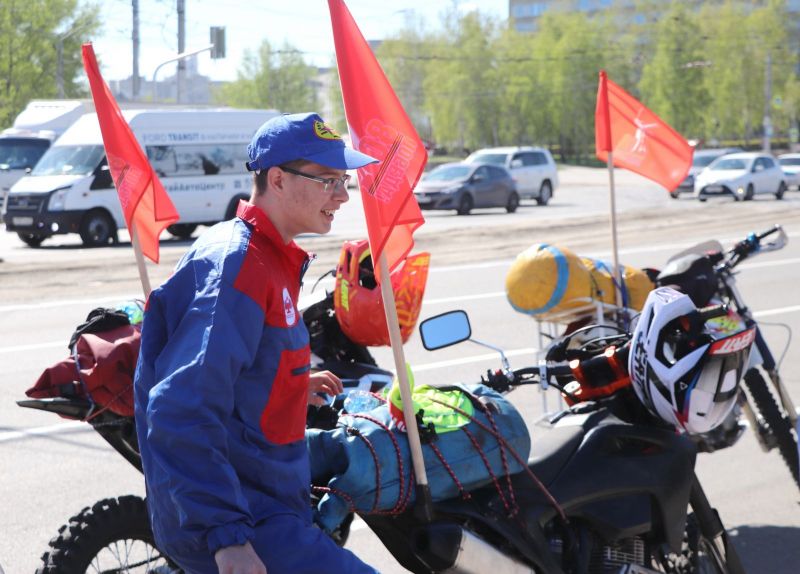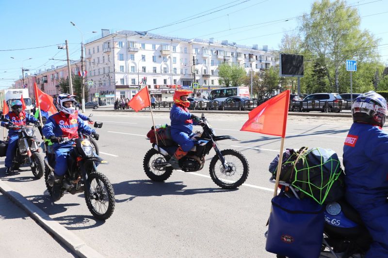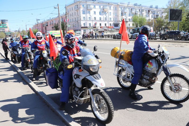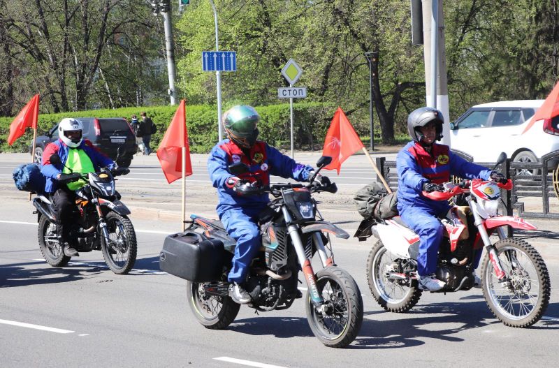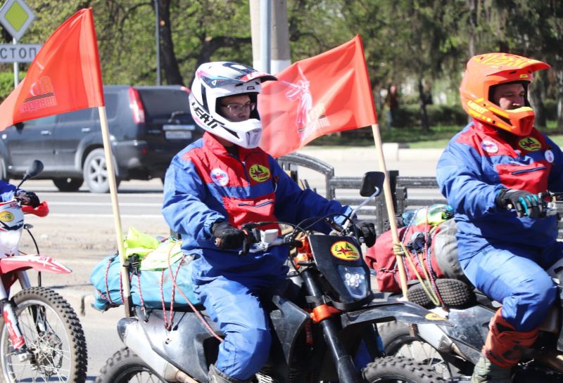Спортсмены клуба автомототуристов «Горизонт» вышли на маршрут 1 мая от площади Победы, возложив перед этим венки у Мемориала Славы. Длина пробега составит 1100 километров, за 11 дней мотоциклисты проедут 11 районов Алтайского края.