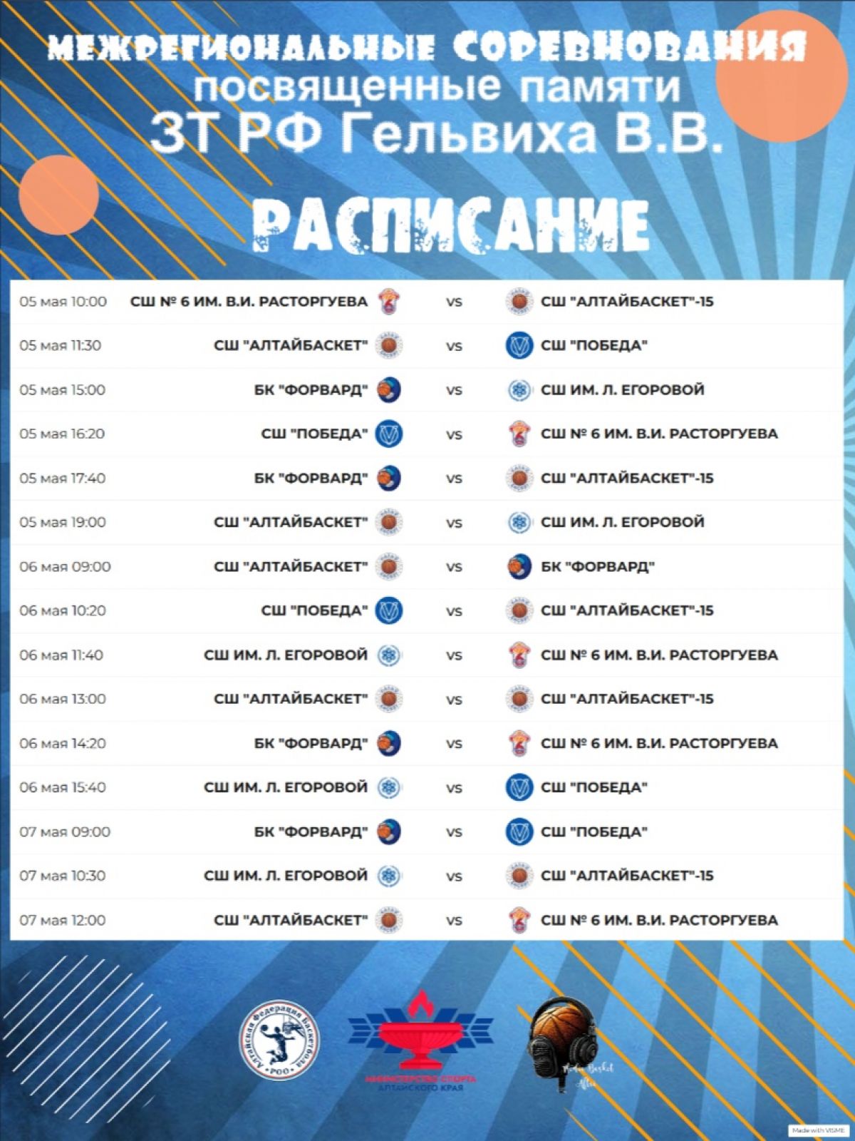 Организаторы приглашают всех любителей баскетбола и просто неравнодушных к спорту жителей Барнаула поддержать юных спортсменов. Ваша поддержка придаст им сил и уверенности в себе. Приходите в «СК «Обь» и станьте свидетелями ярких и незабываемых матчей.
