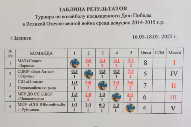 На втором месте расположилась команда СШ «Олимп» из Первомайского района, а замкнули тройку призёров волейболистки СШОР города Новоалтайска.