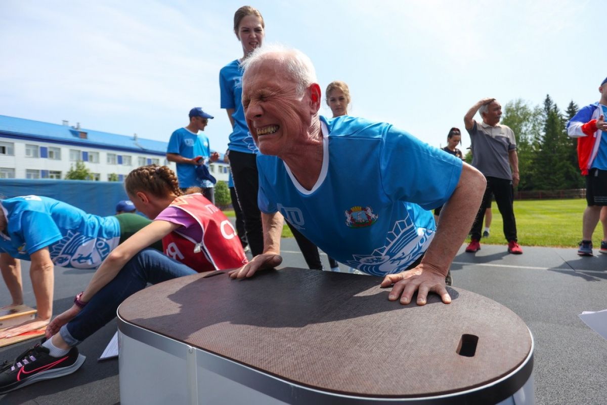 - Движение - жизнь. Если из-за непогоды полежу пару дней дома, то сразу начинает все болеть. Рад, что дети вовлекли меня в это дело. Здесь такой ажиотаж, адреналин прямо зашкаливает. Жаль, до этого травму плеча получил, отжимание у нас, наверное, в минус уйдет, - рассказал пенсионер.