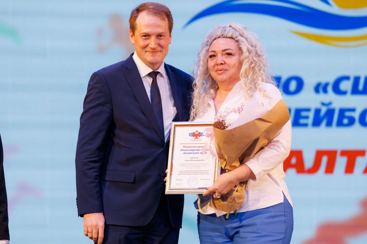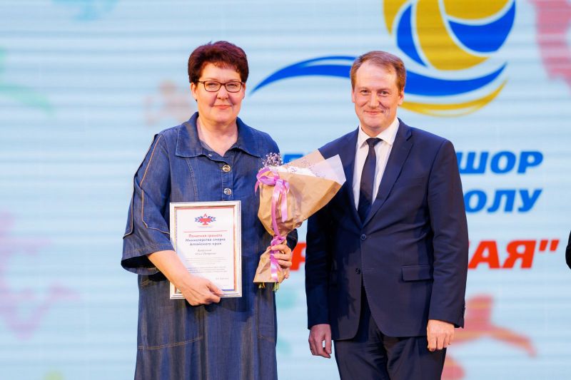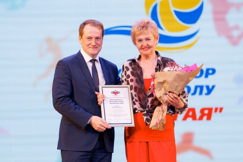 Конечно, вышла на сцену и Лариса Борисовна Казанцева, директор «Зари Алтая», заслуженный работник физической культуры и спорта региона.