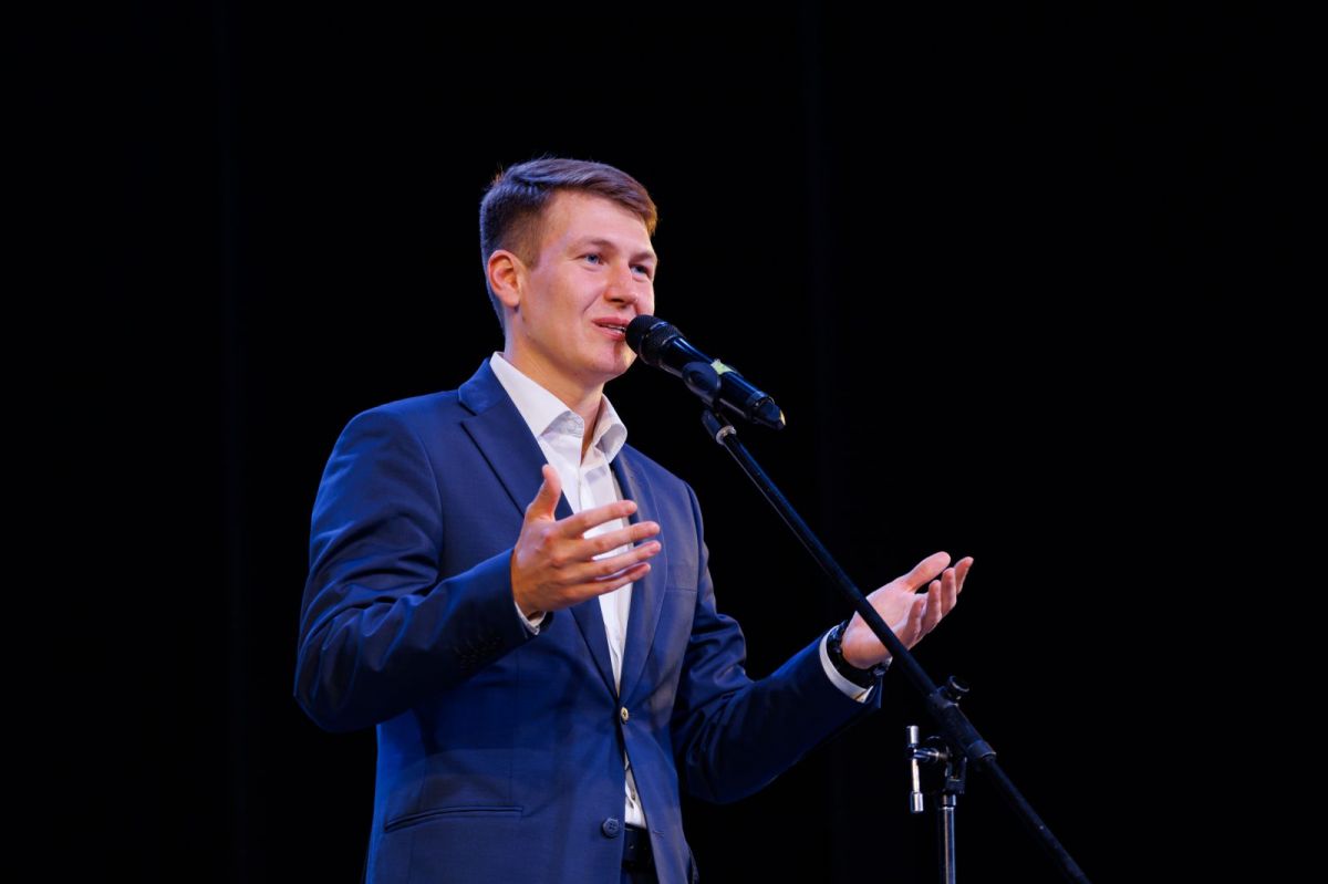 Первым приветственное слово взял Денис Александрович Голобородько - заместитель председателя Алтайского краевого Законодательного собрания и председатель Наблюдательного совета Алтайской федерации волейбола.