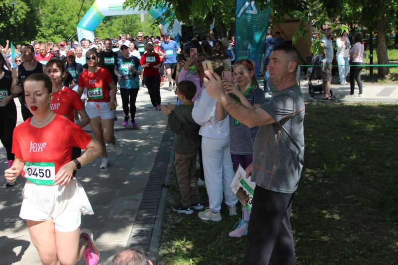 По информации «Сбера», в этом году забег состоялся в 60 городах страны. В барнаульском парке «Изумрудном» для участия в спортивных мероприятиях под общим названием «Зеленый марафон» собралось не менее 1000 человек: за детскими стартами на 420 метров состоялся главный забег - на 4,2 км, а затем северная ходьба на 500 метров.