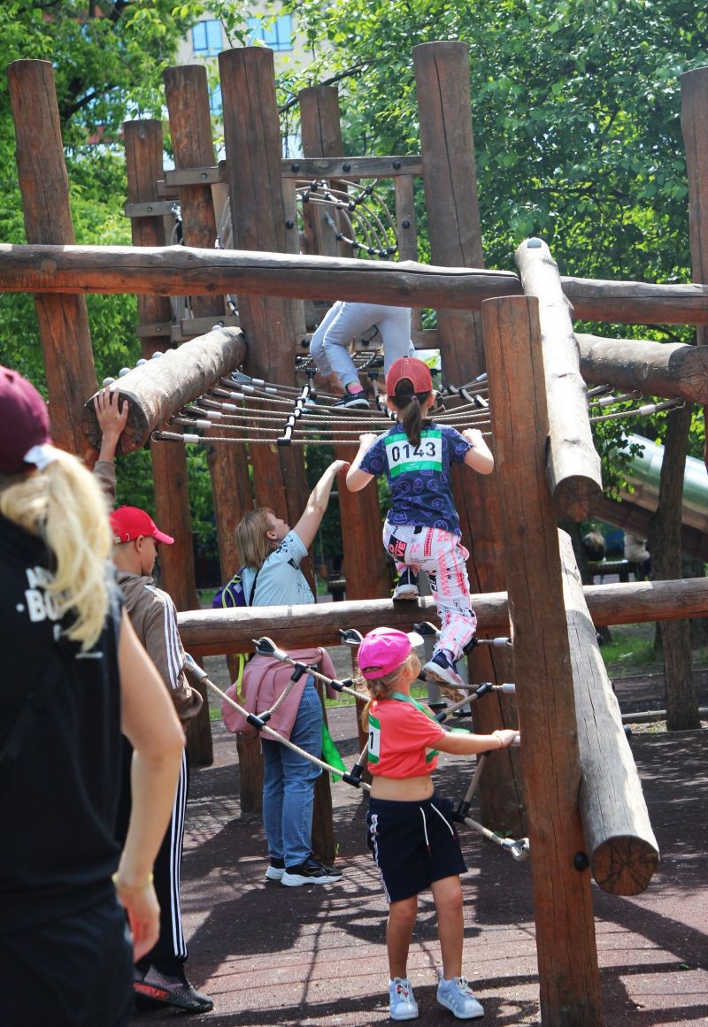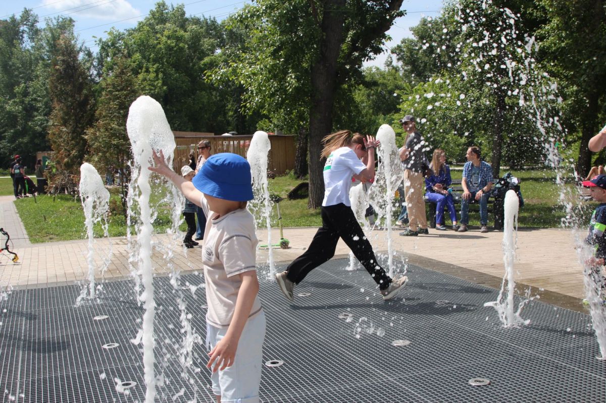 Дети не ограничились бегом по спортивным дорожкам. Получив медаль участников, многие, чтобы до конца выплескнуть энергию, перебрались на лазилки парковых площадок, бегали меж струй фонтанов, короче, развлекались средь буйной зелени парка как хотели.