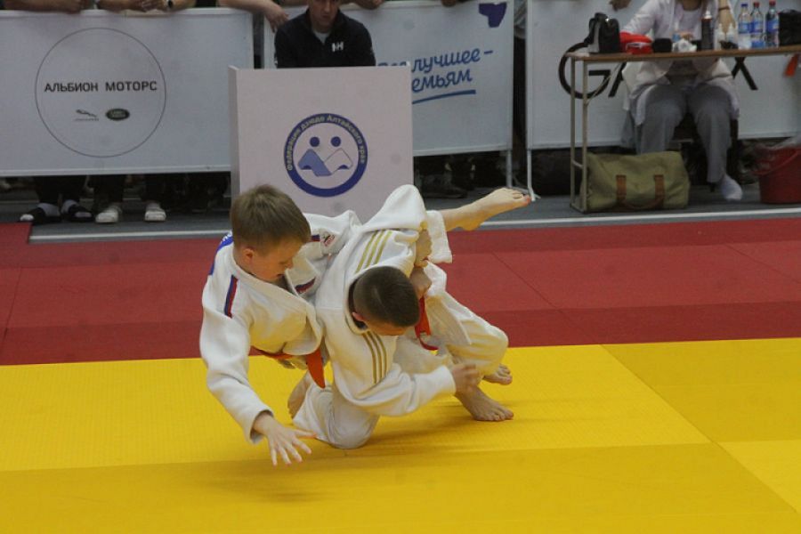 Финальные поединки начались сразу после церемонии открытия, и чемпионы из Алтайского края посыпались как из рога изобилия. Вот ловким приемом досрочную победу одерживает десятилетний Дима Попов в категории 38 кг из барнаульского клуба «Ирбис».