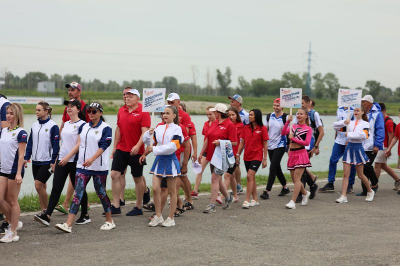 На параде открытия, который на гребном канале традиционно проходит у трибуны рядом с финишной вышкой, быстро стало тесно от участников и зрителей. Борьбу за победу заявились вести 19 команд, из них семь представляли региональные управления федеральных служб и 12 - министерства, управления, органы власти и общественные структуры Алтайского края.