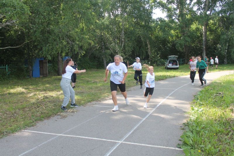 Первыми соревновательную программу начали пять семейных команд с эстафеты на спринтерской дистанции. Дети и мамы бежали по 100 метров, а папы завершали круг стадиона на двухсотметровке. Каждый выложился в полную силу. Первой на финише была семья Ровковских в составе Алексея, Татьяны и сына Тимофея. Вторыми и третьими закончили бег семьи Шишкиных (Евгений, Оксана, Варвара) и Гребе (Виктор, Екатерина, Артем).