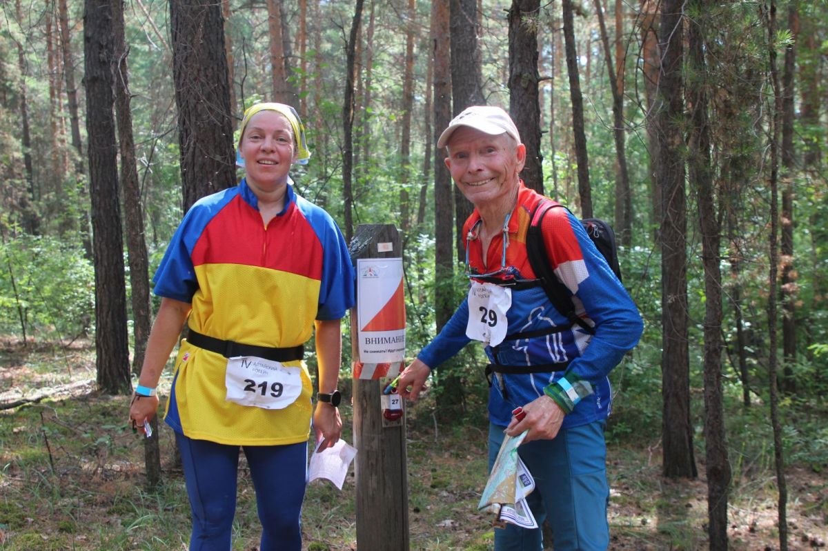 В лесу мы пересеклись с четырехлетним Ярославом Пановым, который двигался по лесной просеке с мамой и тремя другими членами своей семьи (исключая старшего брата Максима, который уехал на велосипеде), и прямо на контрольном пункте сфотографировали старейшего участника рогейна - 78-летнего новосибирца Виктора Степанова, бежавшего со своей родственницей Натальей Жуковой.