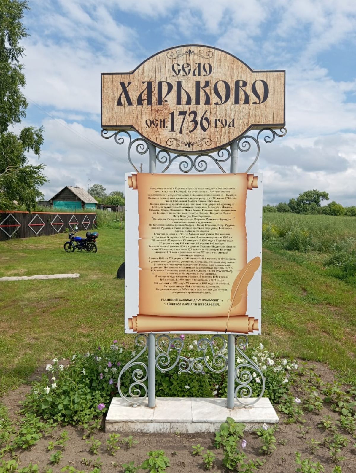 Самый дальний контрольный пункт нынешнего рогейна был в 12 километрах от места старта - около оврага Алтайский Колорадо, природной достопримечательности рядом с берегом Оби, с которого открывается потрясающий вид на речную пойму. В том же северно-восточном направлении, в деревне Харьково, до которой от места старта 8 км, был расположен по договоренности с хозяином подворья пункт подпитки, где путникам можно было заправиться водичкой. Владелец - Александр Галицкий - один из двух жителей, которые, родившись в этом населённом пункте, до сих пор там и живут. У его дома есть памятный знак с датой основания села - 1736 год. На стилизованном свитке, нанесённом на памятник, сведения из истории - от первых поселенцев до наших дней.