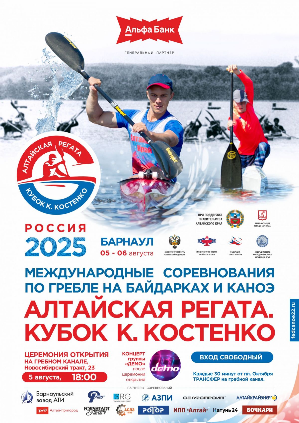 5−6 августа в Барнауле на гребном канале пройдут международные спортивные соревнования по гребле на байдарках и каноэ «Алтайская регата. Кубок Костенко» памяти Заслуженного мастера спорта СССР Константина Костенко.
