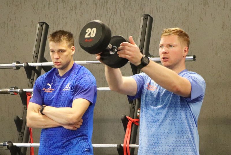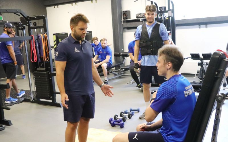 - После окончания прошлого сезона нам удалось сохранить костяк команды. Очень приятно, хорошая работа. Это, в том числе, важно в плане подготовки к новому чемпионату. Парни плюс-минус знают, какие нагрузки, какая у нас работа. Да, есть новички. С предложенными нагрузками более-менее все справляются. По части организации проблем нет. Мы второй раз поехали в город Бийск, всем довольны - у нас лёд, зал атлетизма, футбольное поле. Вроде, всё получается, ребята получают нагрузки. Идёт хорошая, кропотливая, тяжёлая работа.
