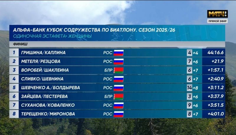 В субботу, 6 сентября, в Сочи одиночными эстафетными гонками на лыжероллерах продолжается первый этап Кубка Содружества по биатлону в сезоне-2025/2026.