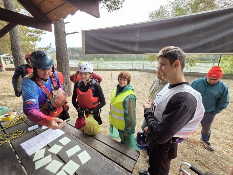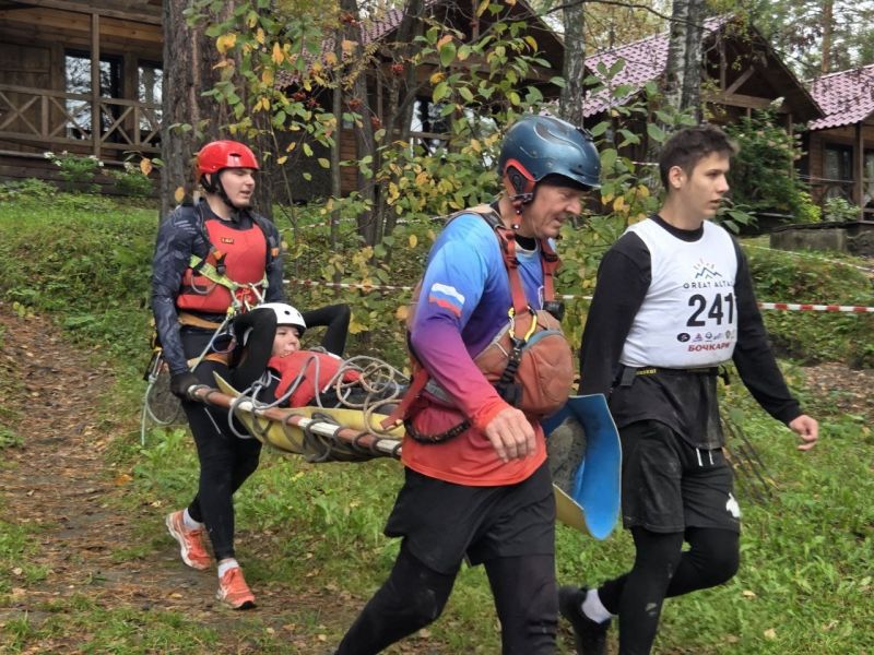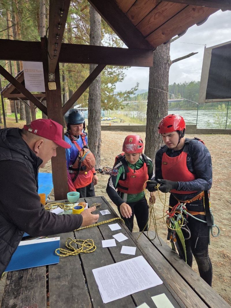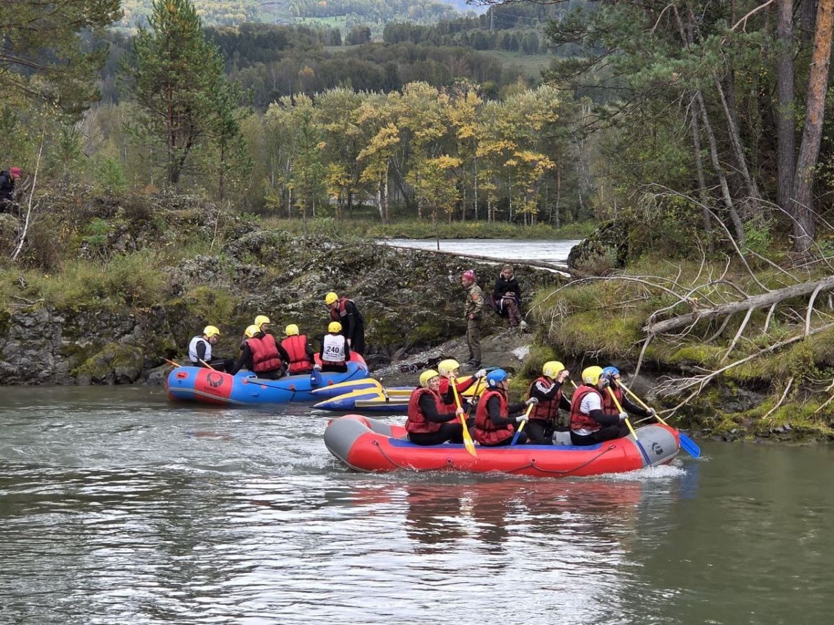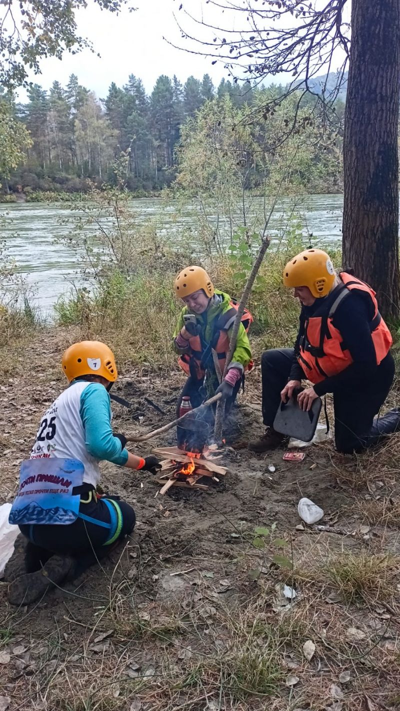 Командная гонка водников также состояла из нескольких участков: спасательные работы на острове посреди Катуни (надо было эвакуировать «пострадавшего» со скалы и транспортировать его на рафте на другой участок берега), разбор топографической карты, изготовление носилок для «пострадавшего», также надо было развести костёр и вскипятить литр воды, навесить тент и, наконец, завершалось всё гонкой на рафтах по воде с обязательным переворотом в районе Айского моста.