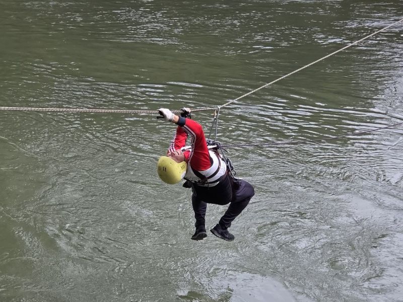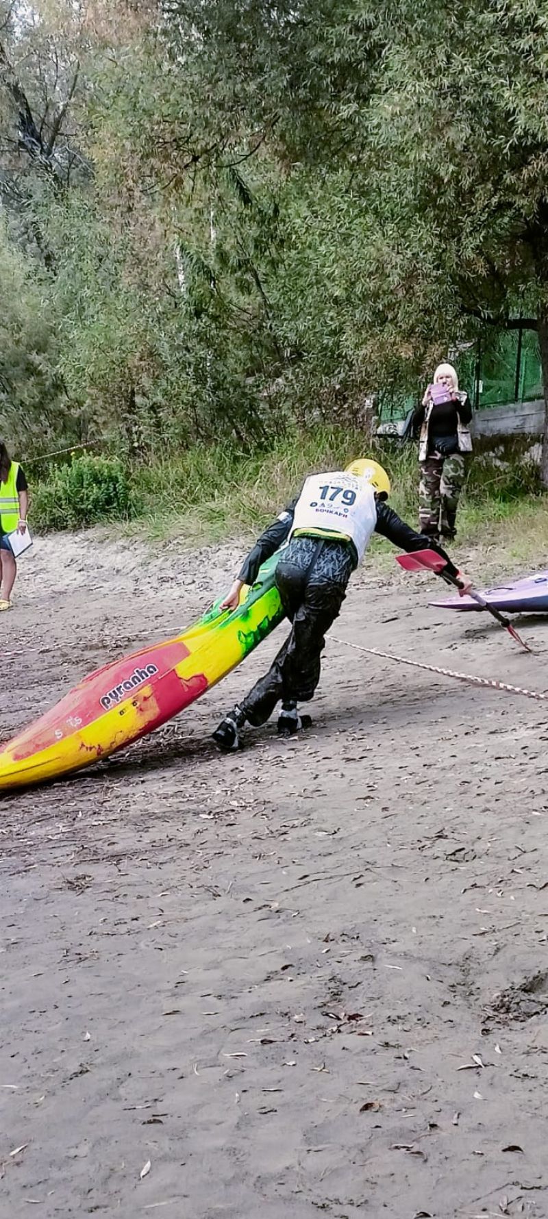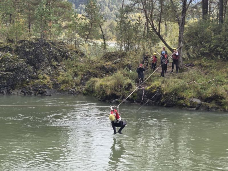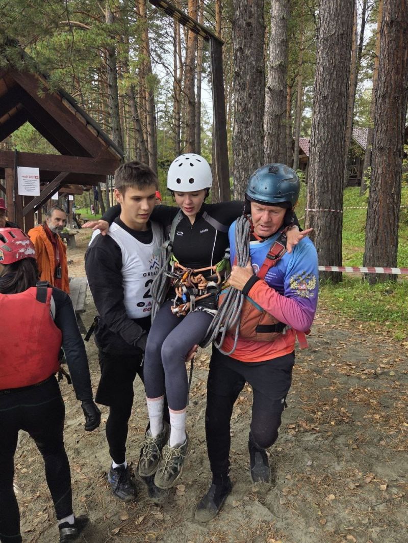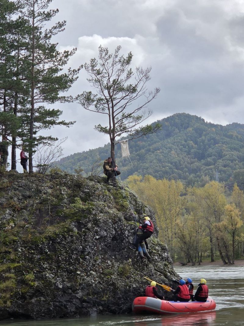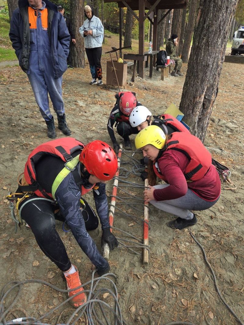 Командная гонка водников также состояла из нескольких участков: спасательные работы на острове посреди Катуни (надо было эвакуировать «пострадавшего» со скалы и транспортировать его на рафте на другой участок берега), разбор топографической карты, изготовление носилок для «пострадавшего», также надо было развести костёр и вскипятить литр воды, навесить тент и, наконец, завершалось всё гонкой на рафтах по воде с обязательным переворотом в районе Айского моста.