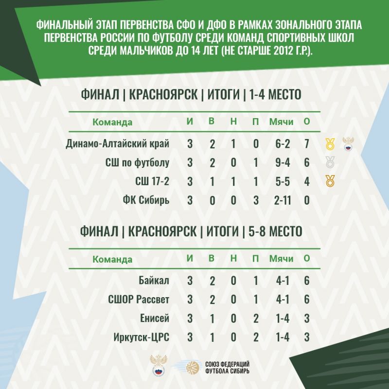 20 сентября в Красноярске завершился окружной финал первенства Сибирского федерального округа по футболу между командами спортивных школ среди юношей не старше 2012 года рождения (U-14).