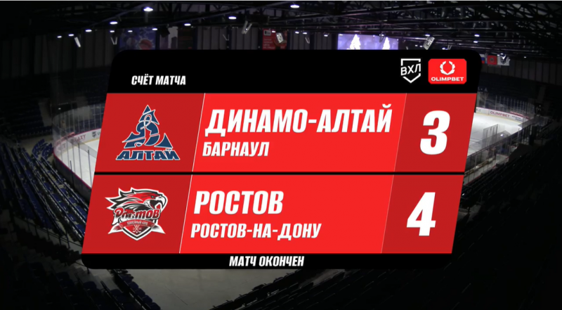 «Динамо-Алтай» (Барнаул) - «Ростов» (Ростов-на-Дону) - 3:4 (1:1; 0:3; 2:0).