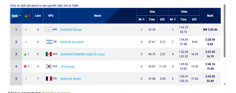 Во вторник, 23 сентября наш самый именитый пловец спорта лиц с ПОДА Роман Жданов в блестящем стиле выиграл финал на коронной дистанции 150 метров в комплексном плавании (на спине - брасс - вольный стиль). 27-летний спортсмен краевого Центра спортивной подготовки завершил дистанцию с новым мировым рекордом 2:20.86, улучшив своё же достижение Токио-2021 - 2:21.17! В финале Паралимпиады-2024 в Париже Роман победил с результатом 2:23.03.