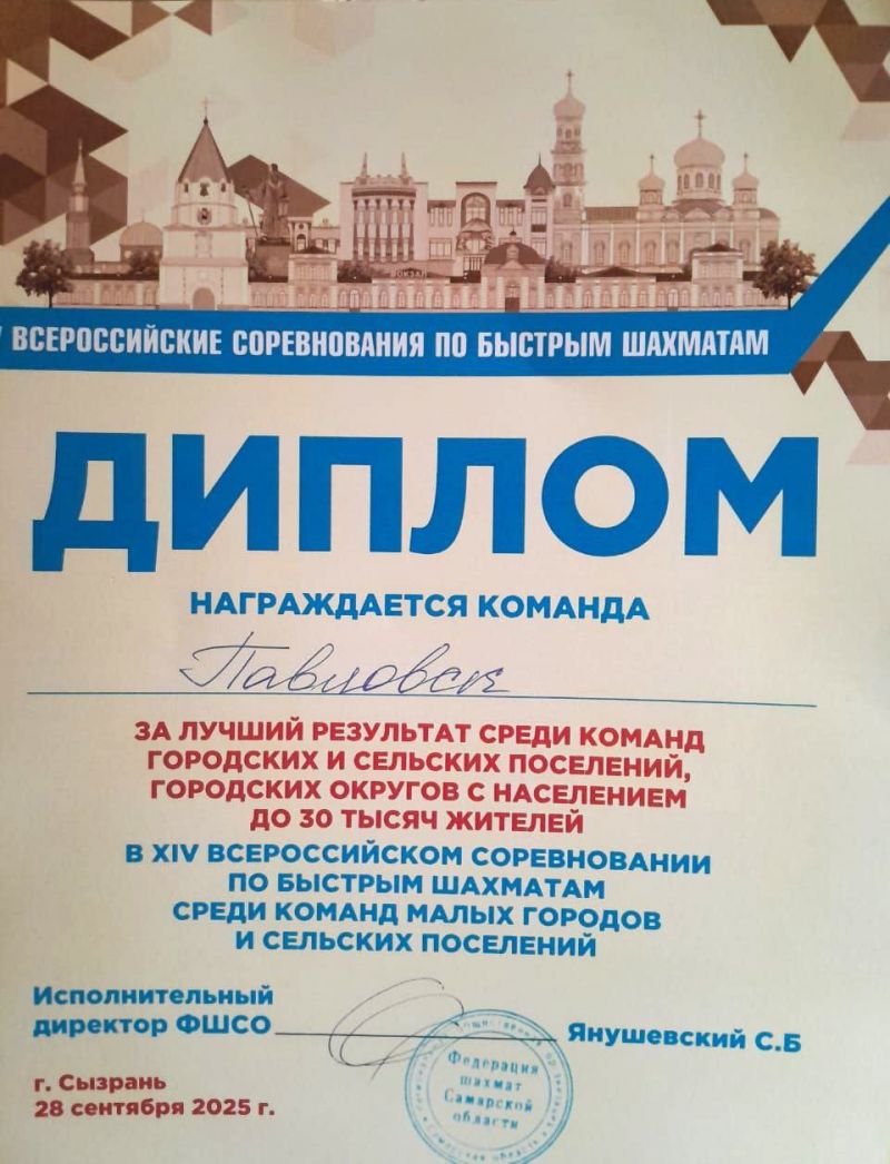 В Самарской области 27−28 сентября проходили XIV Всероссийские соревнования по быстрым шахматам среди команд малых городов и сельских поселений. Алтайский край представляла сборная Павловска, ставшая в июле победителем регионального отборочного турнира.