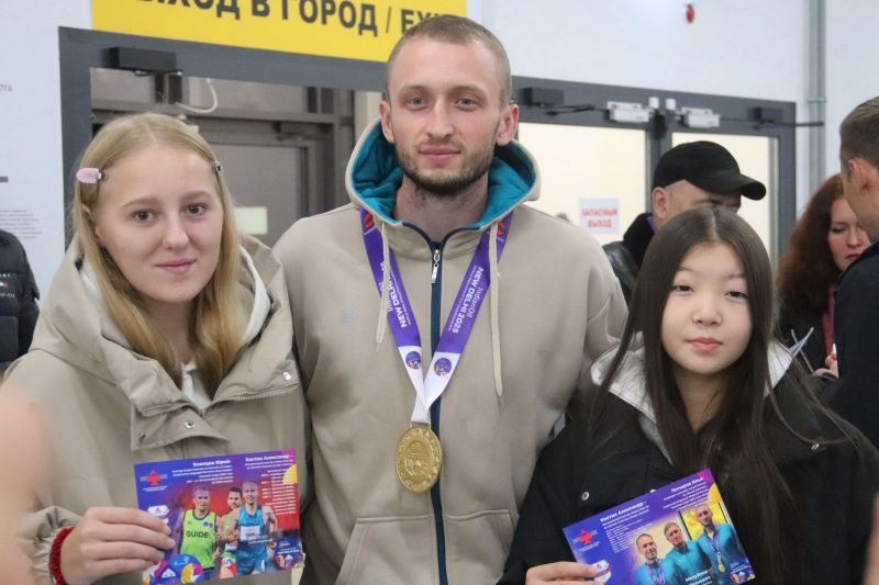 В барнаульском аэропорту встретили чемпиона мира по паралимпийской лёгкой атлетике Александра Костина
