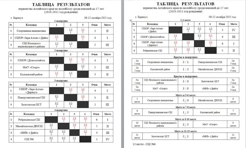 Серебро завоевали воспитанники Ребрихинской СШ - в их активе победы над СШОР города Новоалтайска (3:0) и бийской «Зарей Алтая» (3:1), а замкнули тройку призёров новоалтайские волейболисты (победа над «Зарей Алтая» из Бийска - 3:1). Команда бийской «Зари Алтая» стала четвёртой.