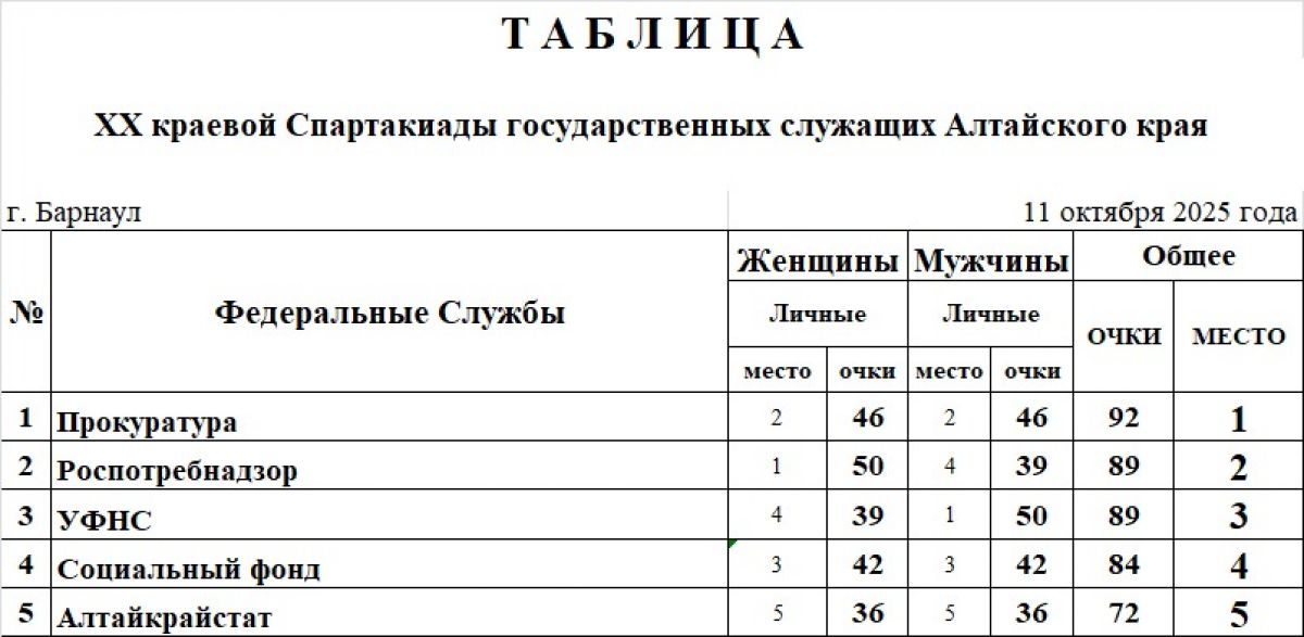 Командный зачет (федеральные):