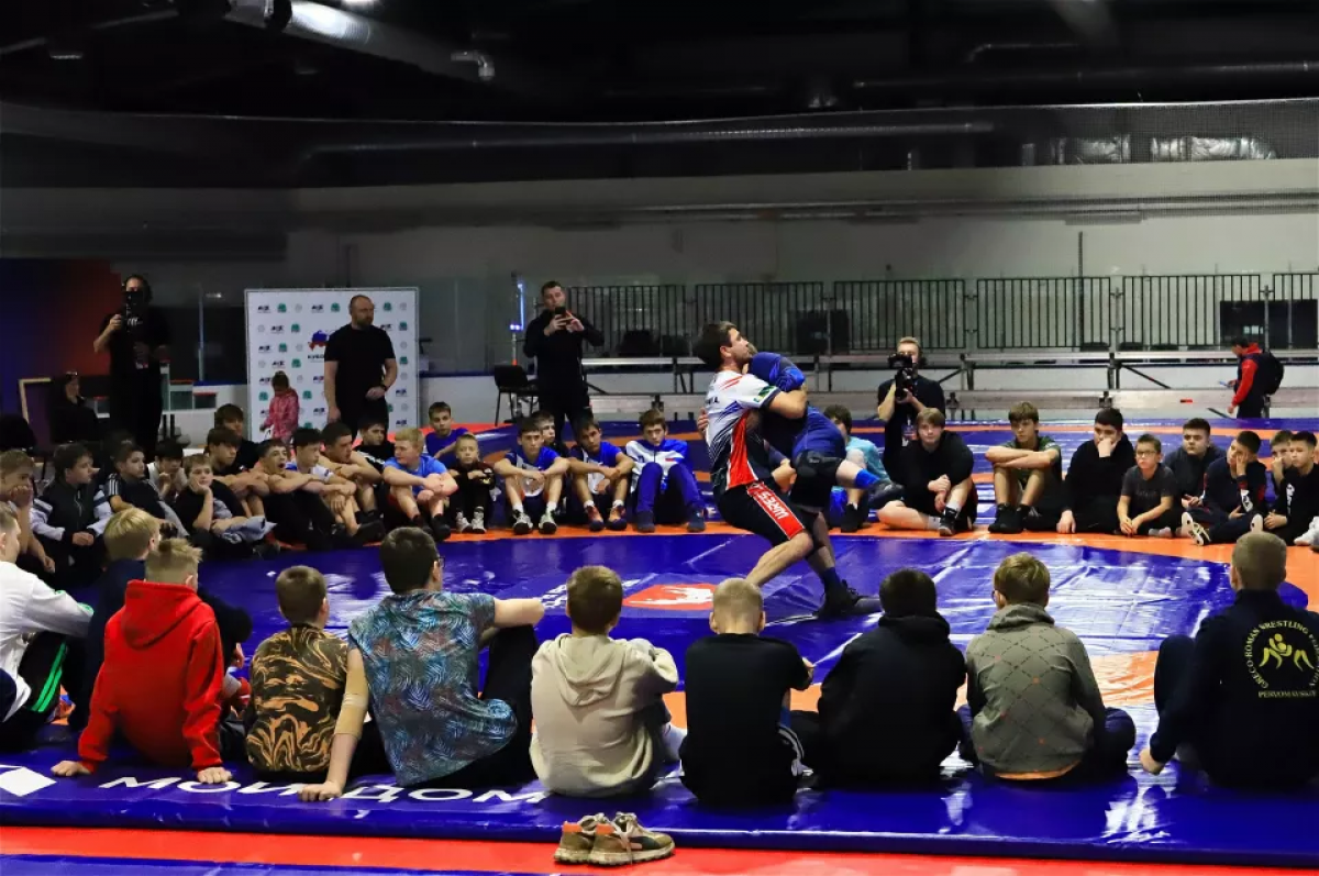 Именитые спортсмены поделились с подрастающим поколением своим опытом. Профессионалы показали, как ловко сделать захват противника и как из-за одной ошибки преимущество в борьбе может перейти к сопернику.