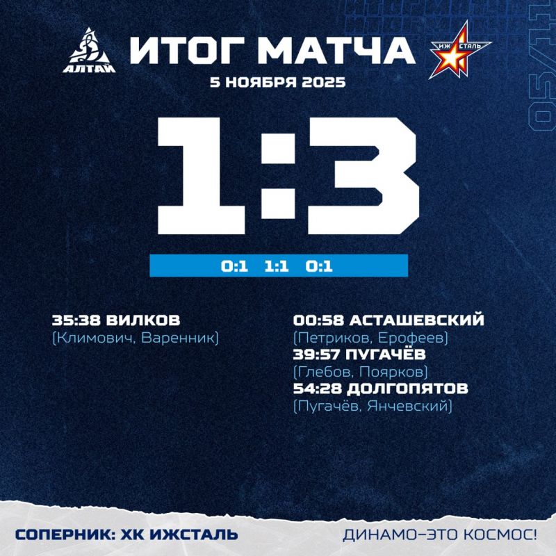 «Динамо-Алтай» (Барнаул) - «Ижсталь» (Ижевск) - 1:3 (0:1; 1:1; 0:1). 5 ноября 2025