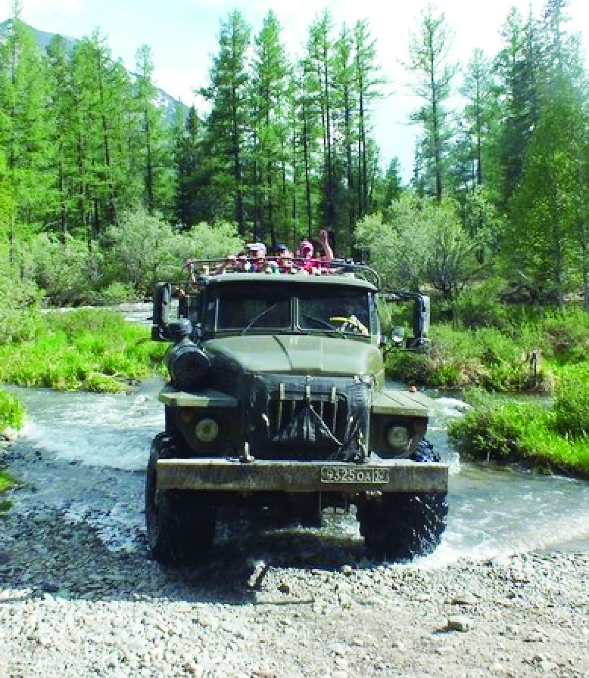 «То направление, которое называется дорогой к озёрам, напоминало что-то невообразимое. Тропа рядом - да, была. По ней маленькими группками скользили редкие туристы, часто обгоняя нас, пока мы выбирали вариант передвижения. Огромные камни-валуны! И как только бог создавал их! Ямы, колеи, напоминающие овраги. Корни деревьев обнажили внутреннюю жизнь огромных кедров и лиственниц. И через всё это скребётся наш «Урал», напоминающий огромного дикого зверя-монстра из фильмов-ужастиков. Кажется, что он захватил группу повизгивающих, болтающих руками, ногами и головами маленьких человечков, закинул себе на спину и везёт в чащобу, в свою далекую и страшную пещеру. Монстр рычит, напрягается и карабкается, не обращая внимания на своих неуравновешенных седоков. Что с них взять? Они - добыча! Слабонервные человечки в это время судорожно хватаются за борта и за разные места неудачно оказавшихся рядом соседей. И уже приехав и осознав, что больное воображение постепенно отступает и осталось где-то на ухабах, божатся, что больше никуда не поедут, такого страха они натерпелись…