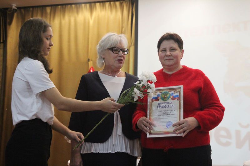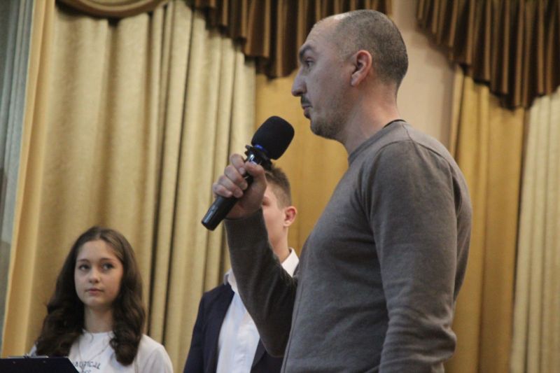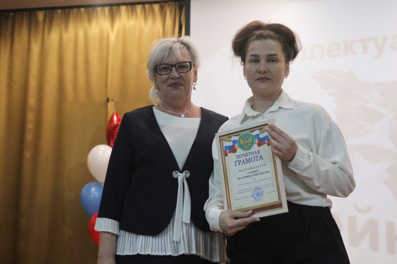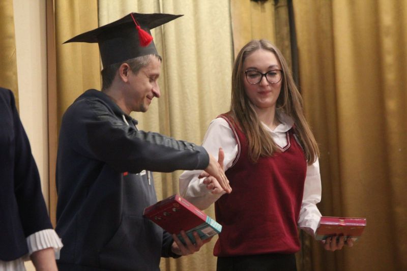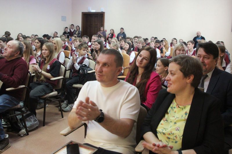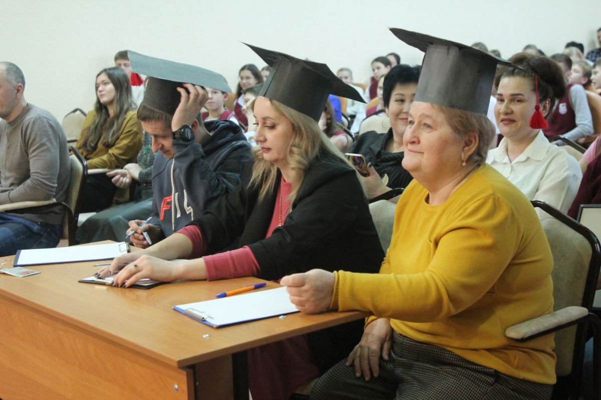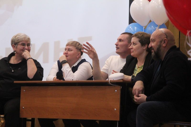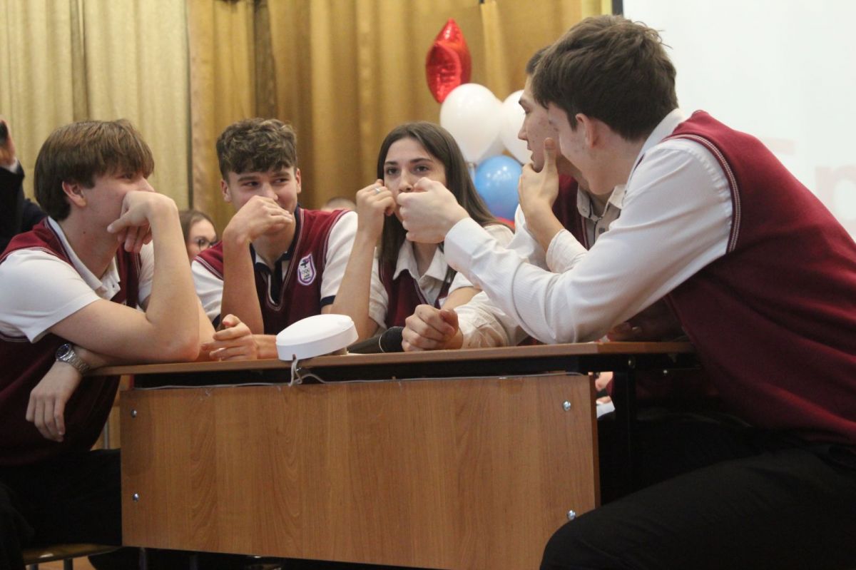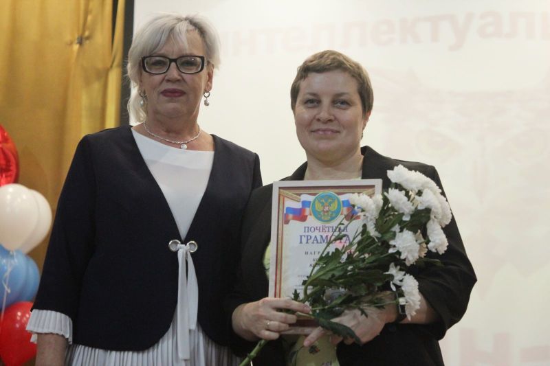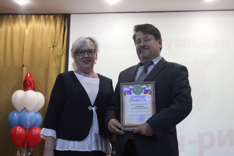 После праздничного поздравления коллектива заместителем директора АУОР Евгением Рубахиным и вручения наград лучшим работникам заместителем директора училища по учебной работе Светланой Царевой на сцене актового зала началась интеллектуальая игра с участием команды преподавателей и двух команд учащихся.