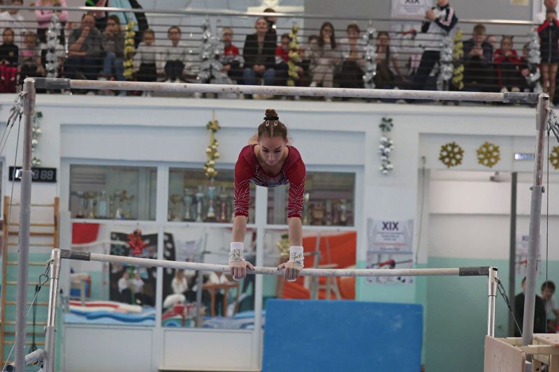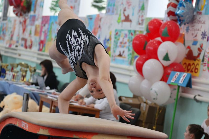 Традиционно предновогодние состязания - самые массовые из тех, которые проходят на базе спортивной школы олимпийского резерва, носящей имя прославленного спортсмена. По словам заслуженного тренера России Евгения Кожевникова, на нынешний турнир в каждой категории подобрался ровный и сильный состав гимнастов.